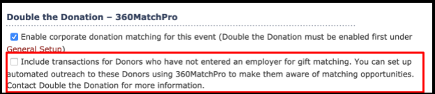 Check: Include transactions for donors who have not entered an employer for gift matching