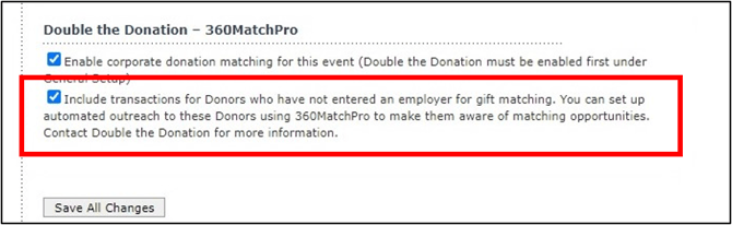 This setting unlocks all Double the Donation automated outreach streams, increasing match submissions.