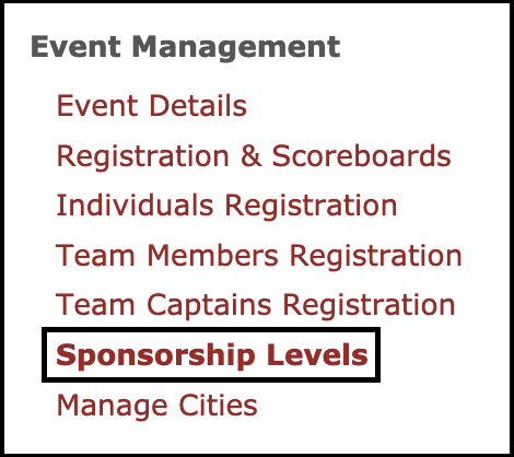 Navigate to your Pledge or Multi-Pledge event → open Sponsorship Levels.