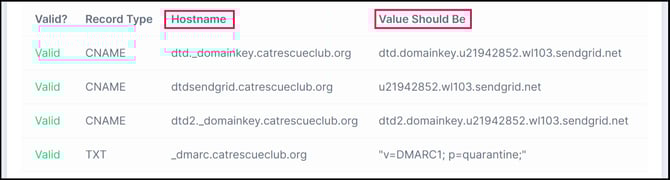 Correct Domain: Ensure CNAMEs are added to the correct domain (e.g., if your Double the Donation account uses matchinggifts@catrescueclub.org, the CNAME should not be added to the catrescueclub.com domain).