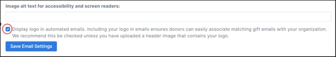 You can upload your organization’s logo so that it appears at the top-left corner of your outgoing Double the Donation emails.