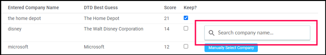 - Select the "Manually Select Company" button, and a company search tool will appear.