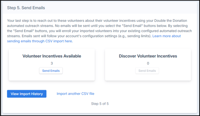 - Selecting "Send Email" enrolls the imported volunteers into your existing configured automated outreach streams.