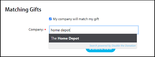 - Sample text: "Did you know that many companies match donations made by their employees to our organization? To see if your company will match your donation and to access the appropriate forms, guidelines, and instructions, please use the search box below."