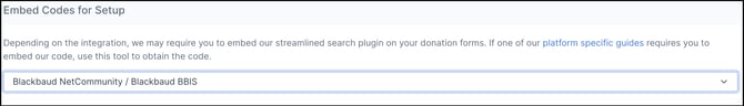Under Embed Codes for Setup, select Blackbaud NetCommunity / Blackbaud BBIS.