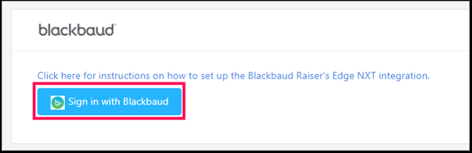 - You will be redirected to the top of the screen. Click Sign in with Blackbaud and enter your credentials to complete the connection.