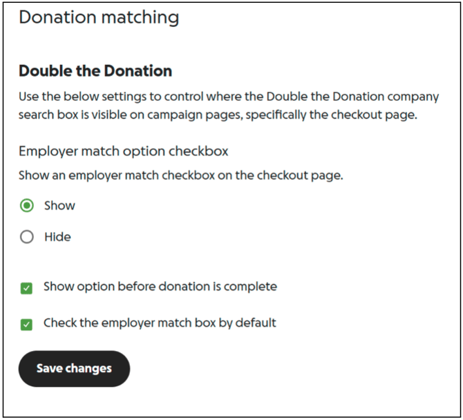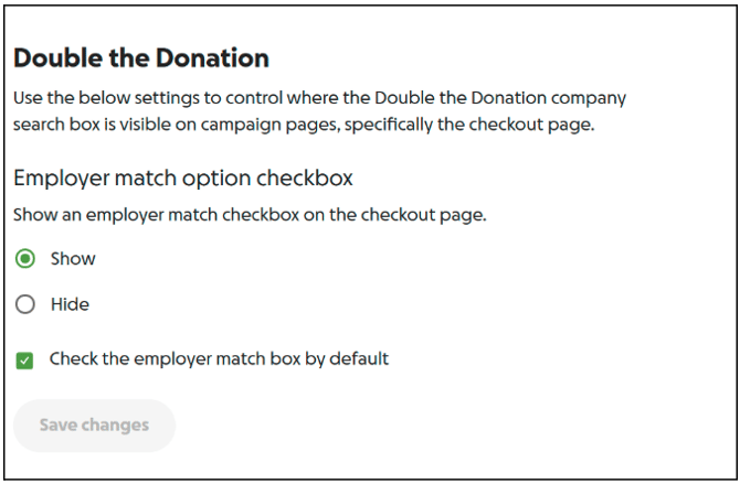 A: Only donations from campaigns with a designation of "peer_to_peer," "crowdfunding," or "donation" will flow into Double the Donation Matching.