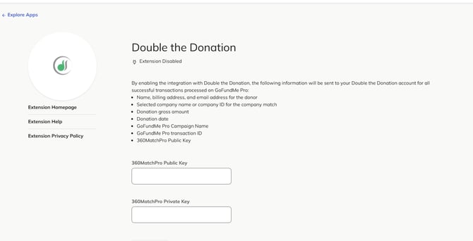 A: If you wish to disable Double the Donation, navigate to the Double the Donation App in Apps & Extensions and select "Disable Integration".