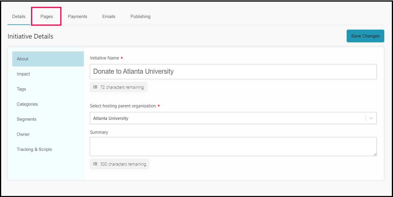 Step 4 — Select Your Initiative and Open the Pages Menu