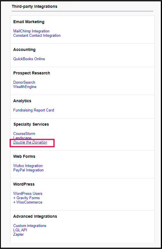 Under Third-party Integrations, click Double the Donation.