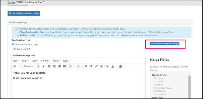 If missing, click Insert Double the Donation Plugin.