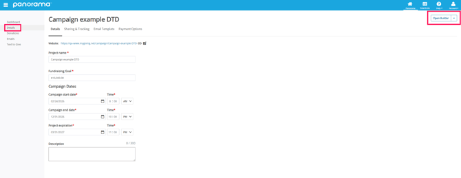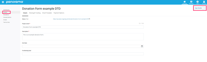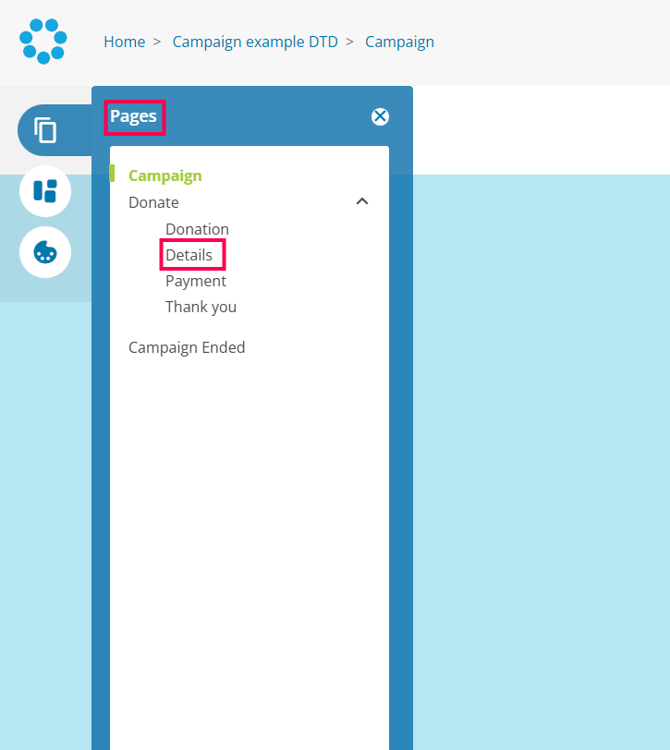 4. Within the Builder, open the Pages menu option. Find and select Details