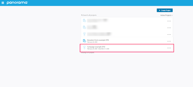 - Under the Projects menu, select the Campaign you’d like to enable matching gifts with.