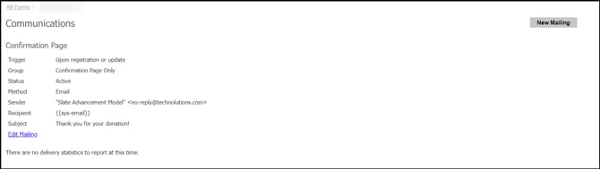 On the summary page for the form, click Edit Communications. The Communications summary page appears.