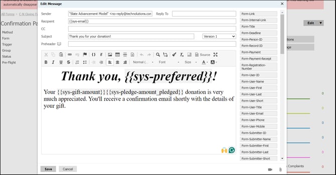 The confirmation page must include the GUID of the form. This unique ID serves as a donation identifier with the Double the Donation platform.
