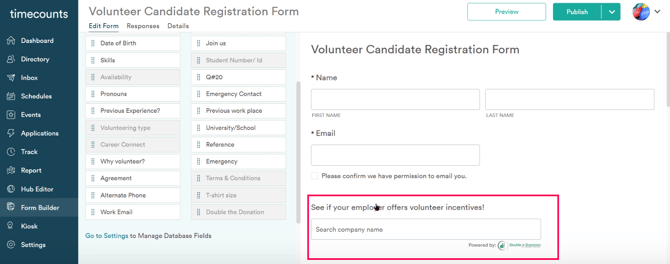 That's all there is to it! Your Timecounts volunteer forms will now be integrated with Double the Donation Volunteering!