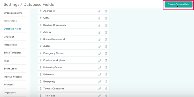 - Navigate to Settings → Database Fields and click Create Custom Field (top right).