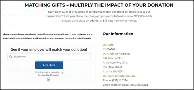 Double the Donation is the industry-leading matching gifts automation solution for nonprofits and educational institutions to identify more matching gift revenue opportunities and drive more matches to completion. You’ll need a Double the Donation account to activate the matching gift functionality within this partner platform. Not a Double the Donation client? Schedule a demo at https://doublethedonation.com/demo-request/.
