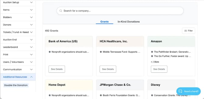 Double the Donation’s Sponsorships Directory on BiddingOwl - FAQs