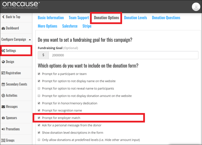 Step 4 — Enable Employer Matching on the Campaign
