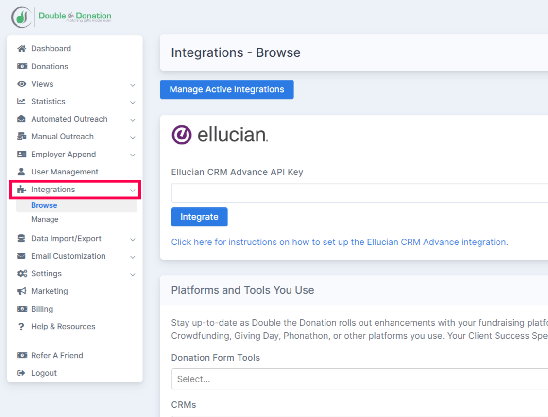 Does Double the Donation integrate with CRM Advance by Ellucian?