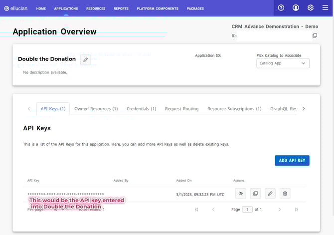 Under the Ellucian integration card, paste the Ellucian API Key created in Ethos.