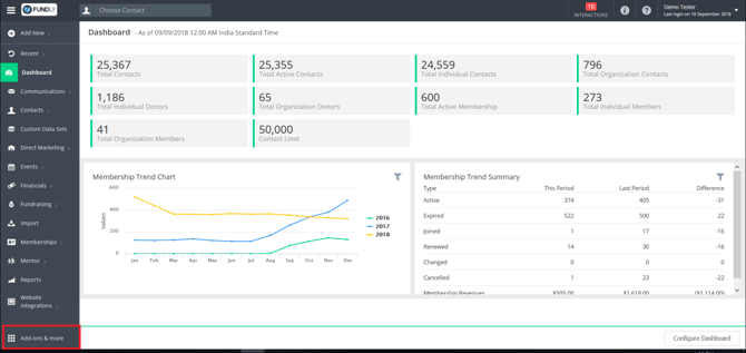 From your NonProfitEasy dashboard, click Add-ons & More.