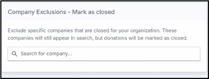 Impact on Record Status: If a company on this exclusion list is selected via API or bulk upload, the donation record will be automatically marked as closed.