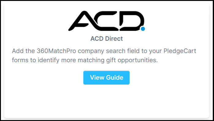 View integration guides for connecting 360MatchPro (now Double the Donation) with donation platforms like PledgeCart.