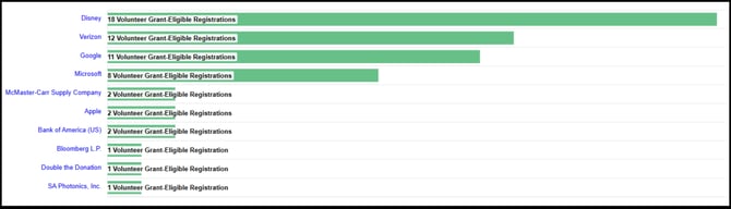 Report: Top Companies by Volunteer Grant Eligibility