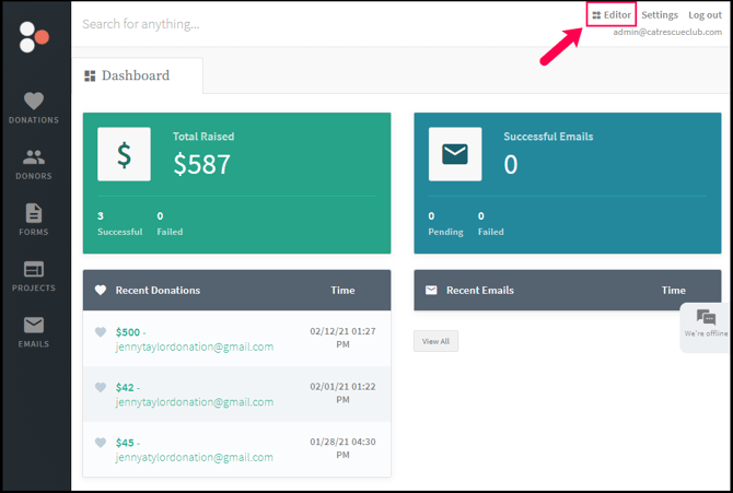 In the top-right corner of your Hopsie dashboard, click Editor.