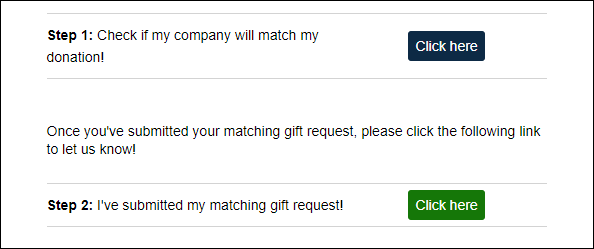 Donors who use their corporate email addresses (e.g., John@homedepot.com) will automatically have their donations linked to their employer’s matching gift program, provided the company is listed in our database. Even if a donor doesn’t actively use the matching gift tool, their corporate email will trigger the correct matching gift association.