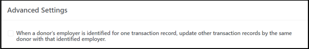 Advanced Settings: You can enable this feature by checking the Advanced Settings box. This allows for automatic updating of historical records based on the donor's email address.