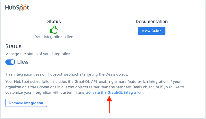 Select Activate GraphQL Integration.