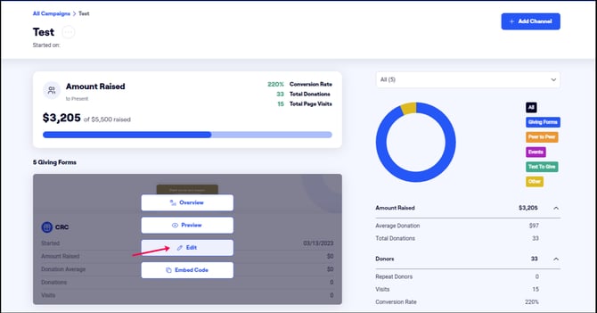 Step 2 — Open the Campaign and Edit Your Giving Form