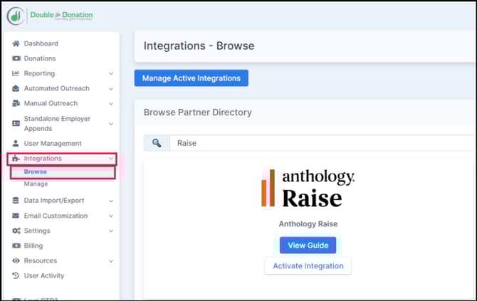 Section 2: Integrate Double the Donation Matching with Raise from Anthology