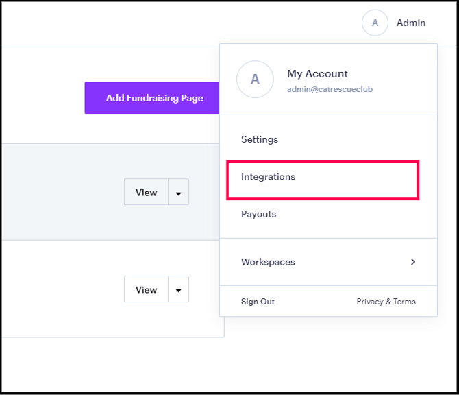 Select Integrations.