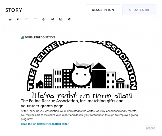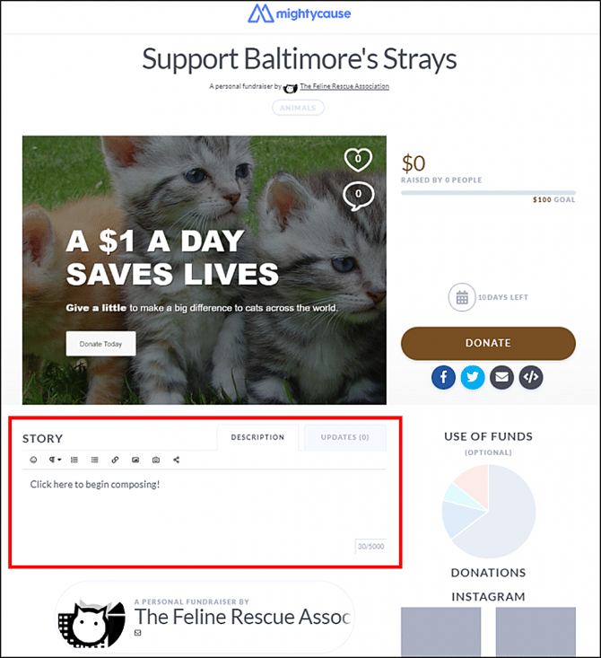 Navigate to your MightyCause fundraising page and open the Description (Story) section.