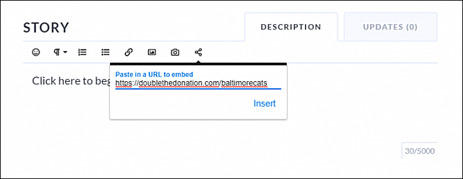 Paste the URL from your Double the Donation Matching portal into the embed field.