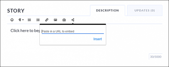 From the editing toolbar in the Story section, click the Embed URL icon.