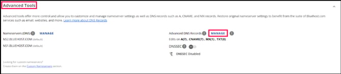 Under Advanced Tools, click Manage beside Advanced DNS Records.