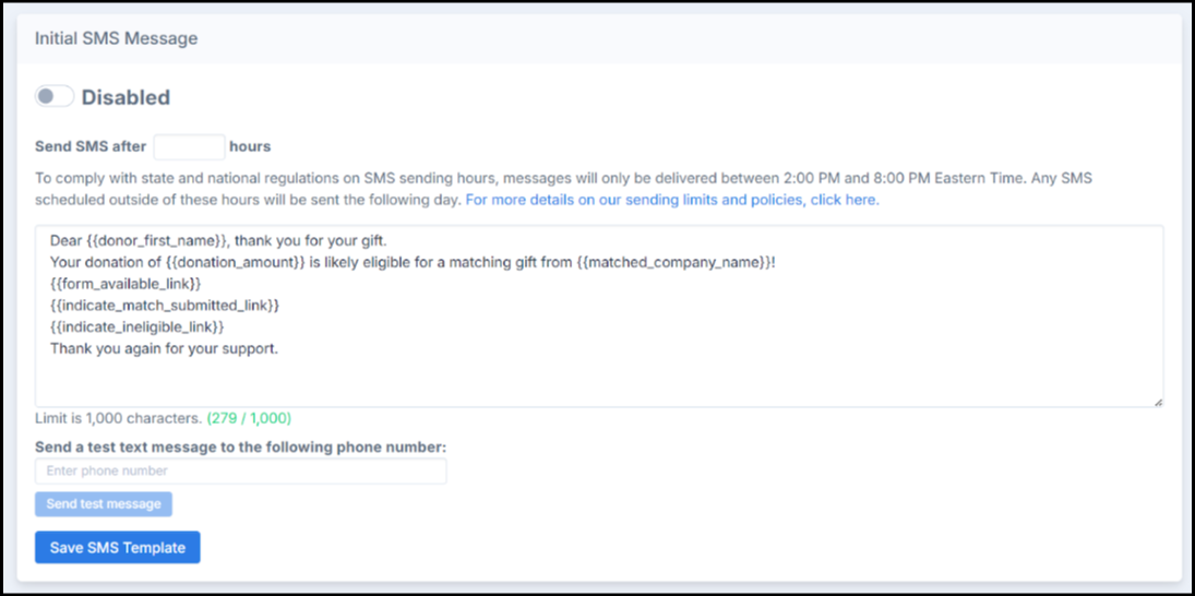 This article explains how you can configure and send SMS automated outreach from the matching module. This feature is currently only available on the Double the Donation Matching Enterprise Plan.