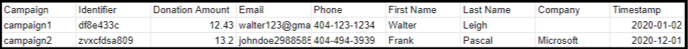 | Company Name | ✘ | If known, include the donor’s employer; we’ll map to our database entry. | Microsoft |