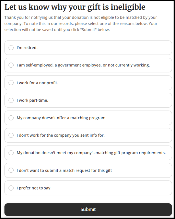 "My donation is not eligible for a matching gift"