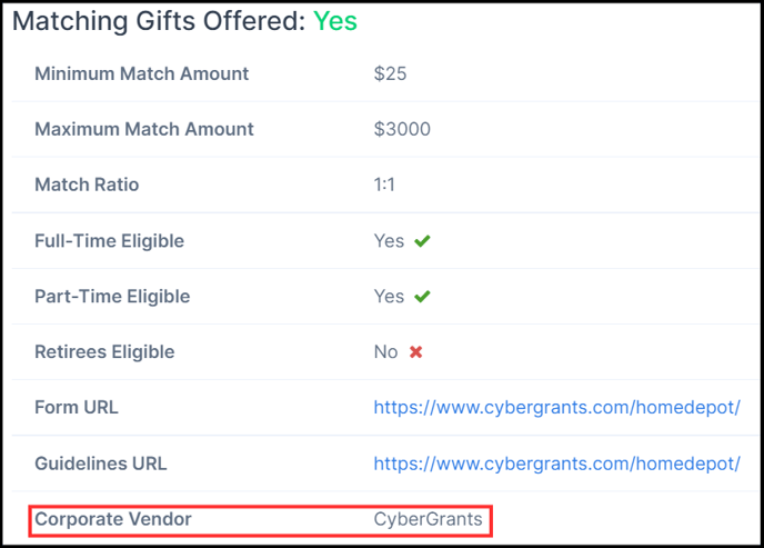 You can also view which vendor each company uses directly in your Double the Donation Matching Module.