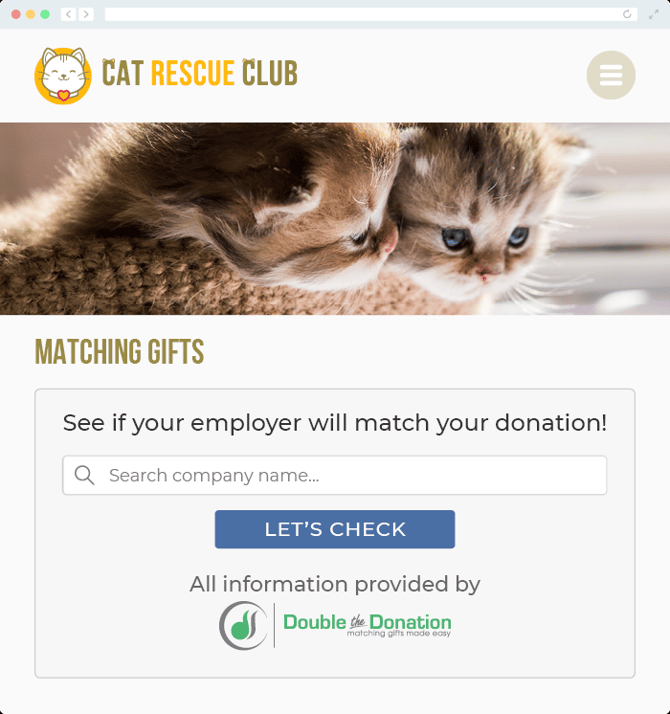 To install Double the Donation's matching gift search tool anywhere on your website, simply copy and paste the Embed Code into your matching module. Take a look at this example: