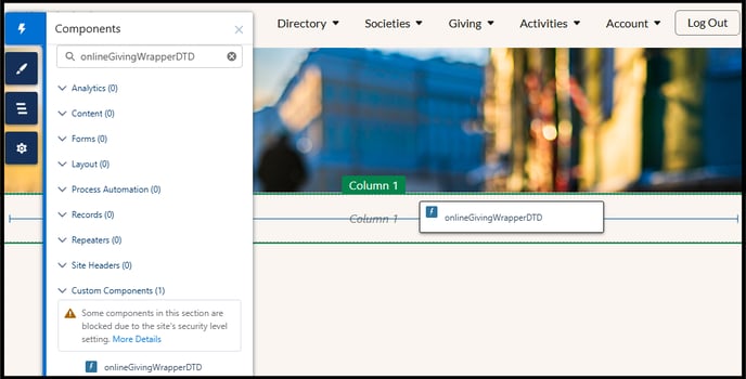 - Click on the onlineGivingWrapperDTD and drag it on to the page.