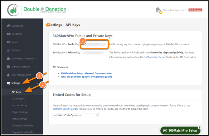 Step 3 — Copy Your Public API Key from Double the Donation