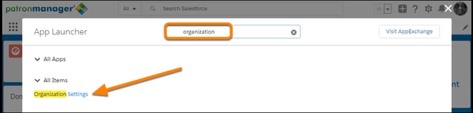 In the App Launcher search bar, type Organization Settings.