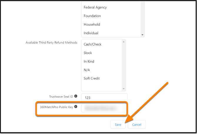 Paste your Double the Donation Matching Public API Key into the appropriate field.